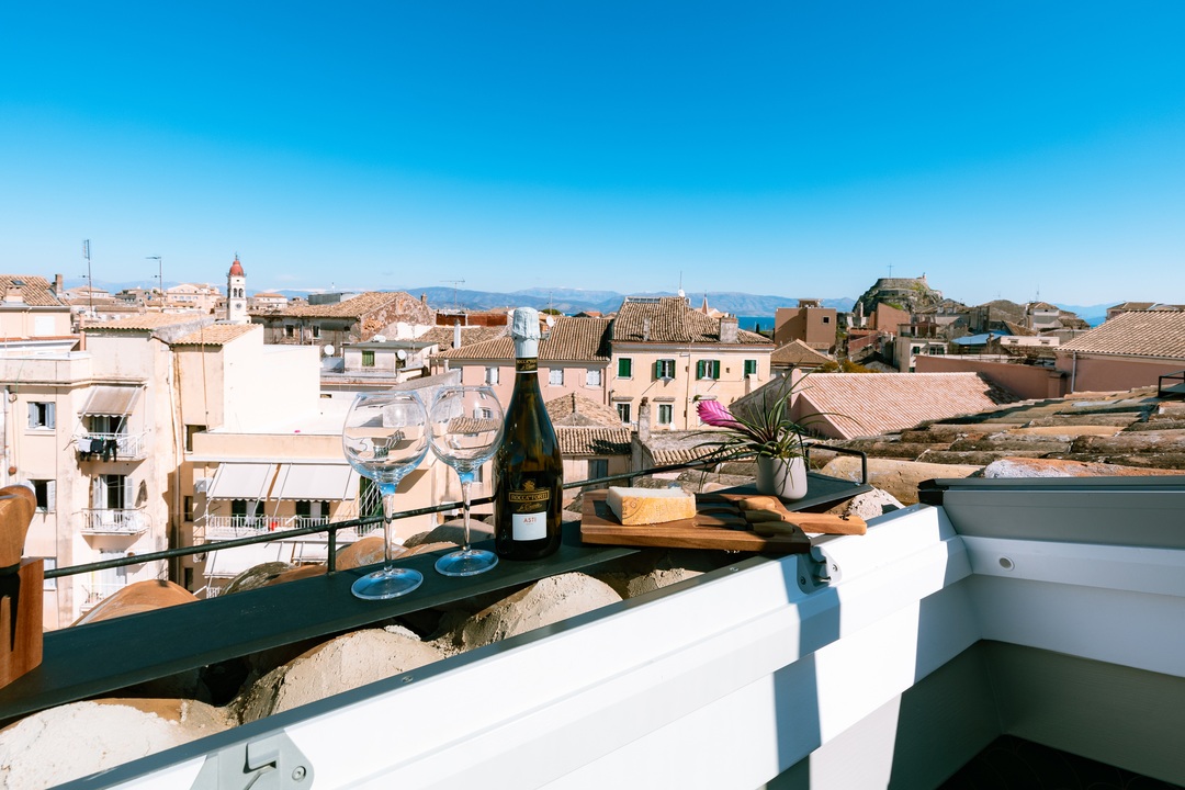 each suite offers.a skylight that can be turned into a small balcony so you can enjoy a picturesque and unobstructed panoramic view of Corfu old town