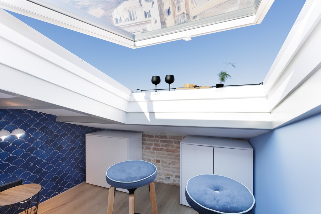πλήρως ανακαινισμένο με πολυτελή, μοντέρνα και διακόσμηση και με πρακτικές λύσεις που θα κάνουν τη διαμονή σας αξέχαστη και άνετη. Σε ήσυχη τοποθεσία σε αδιέξοδο και με φεγγίτη - μπαλκόνι που προσφέρει εκπληκτική ανεμπόδιστη πανοραμική θέα στην παλιά πόλη της Κέρκυρας, ώστε να μπορείτε να απολαύσετε ένα χαλαρό ποτό με την γοητευτική θέα της εκκλησίς του Αγίου Σπυρίδωνα, της Anunziata και τα επιβλητικά ενετικλα φρούρια. Πλήρως εξοπλισμένος χώρος με κουζίνα με ηλεκτρικές συσκευές όπως καφετιέρα Nespresso, τοστιέρα, βραστήρα και πληρθ?