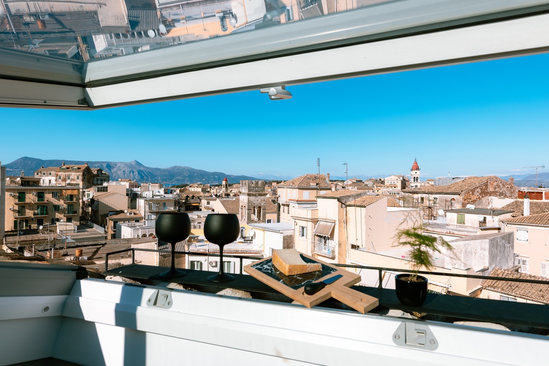 Całkowicie i całkowicie odnowiony w ekskluzywnym nowoczesnym wystroju, w pełni wyposażonej kuchni z urządzeniami, Nespresso i toster. Spokojna lokalizacja cul-de-sac z balkonem ze świetlikiem, który oferuje zapierające dech w piersiach niezakłócony panoramiczne widoki na stare miasto Korfu, dzięki czemu można cieszyć się romantycznym napojem z niezapomnianym malowniczym widokiem na strój Spyrydon Chucha, Anunziata i zarówno weneckiej twierdzy. Specjalnie wybrane materace do spokojnego i spokojnego snu i dekoracyjne szczegóły oraz praktyczne rozwiązania, które sprawią, że pobyt niezapomniany i wygodny